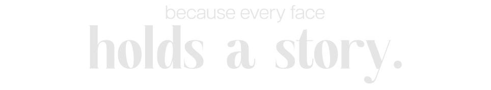 Light gray background with white text that reads 'because every face holds a story.'